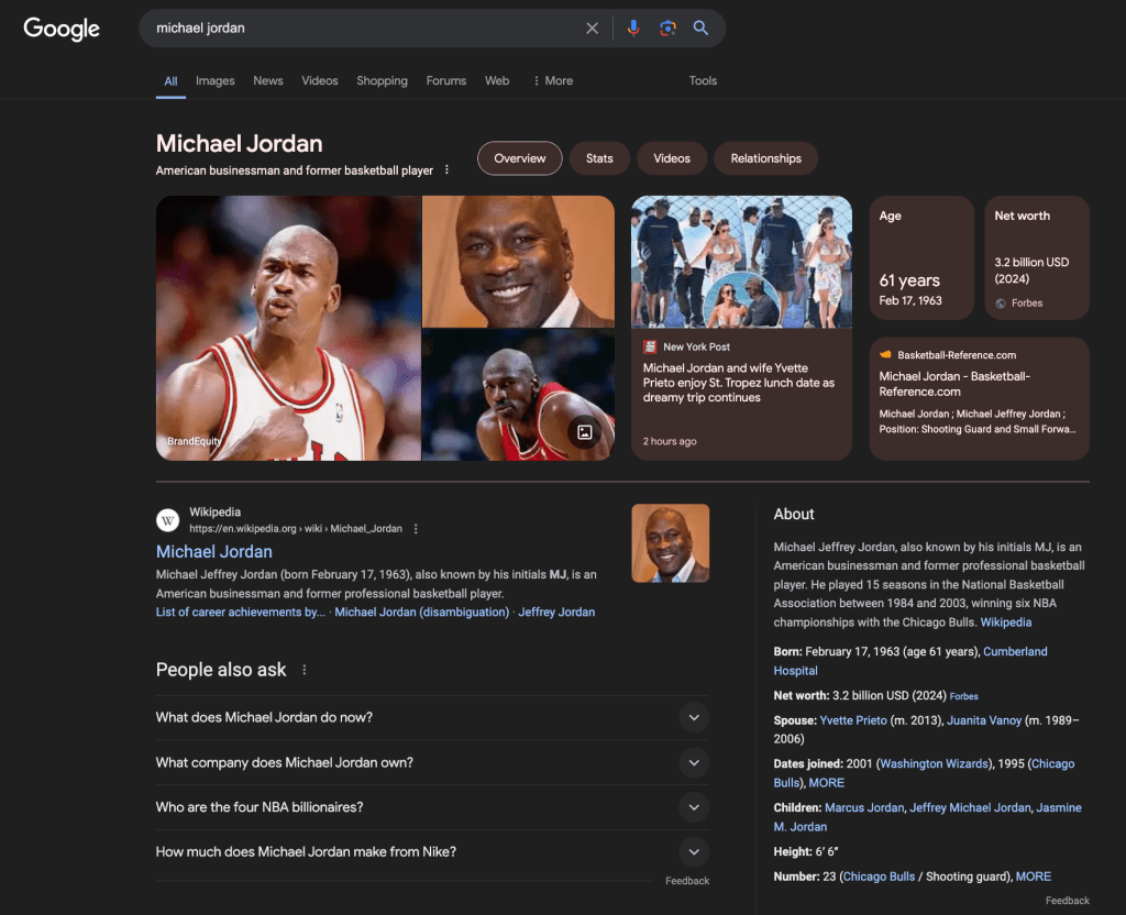 Learn About Google Knowledge Panels & Google Verification https://www.youtube.com/watch?v=m1nd0V9_jCQ Suppose you Google an emerging or established public figure (celebrity or influencer) or even a well-recognized and distinguished person in your industry. The search query you submit will likely generate a unique page with prominently displayed boxed features containing text and images. This presentation of a subject on the Search Engine Response Page (SERP) is how Google makes the most authoritative and relevant content about an individual easily accessible. On a mobile device, the entity box will appear at the top of your screen, and on a desktop, it will appear at the top and right of your screen. Called Google Knowledge Panels, these entity boxes contain various algorithmically generated content, some static and some dynamic, but all of it is intended to provide quick facts about the subject. The static components comprise biographical facts, figures, and images sourced from personal and high-ranking websites, while images and posts from social feeds populate the dynamic components. The most developed and ‘optimized’ panels may include past and current professions, titles, current age, place of birth, relatives, schools attended, academic credentials earned, movies produced, books written, awards won, social accounts, and website links. Many but not all panels are directly sourced from Wikipedia, IMDb, and Amazon author profiles. Still, anything available in the Google Knowledge Graph (see knowledge-based systems) can populate these entity boxes. Knowledge panels improve search engine user experiences by making verifiable information about a subject more accessible. Note that entity boxes are different than business boxes (Google Business Profiles) because they are generated by search algorithms and not information provided by the business owner or representative. The business panels present information about the business’s hours and location. However, if the business’s name is the same as the business owner’s, a cursory review of the panel may look similar to an individual’s Google Knowledge Panel. Many individuals have both. Suppose your name does not generate an entity box populated by Wikipedia, IMDb, Amazon, The CIA World Factbook, or another biographical source. A digital publicist can help develop strategies to secure one. If you have questions about Google verification, feel free to reach out. (Updated from Jordan’s 2022 post in Bicoastal Publicist)Jordan Schaul Biographical information (e.g., age, birthplace, relatives, education, profession, etc.) presented in the Google Knowledge panels are usually sourced from high-ranking domains like Wikipedia, IMDb, and Amazon. The images above are desktop screenshots of Google Knowledge Panels for Julia Roberts and myself.